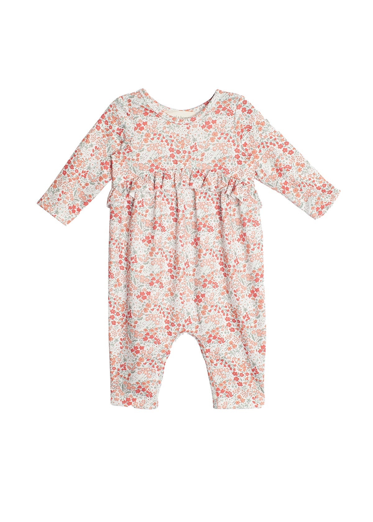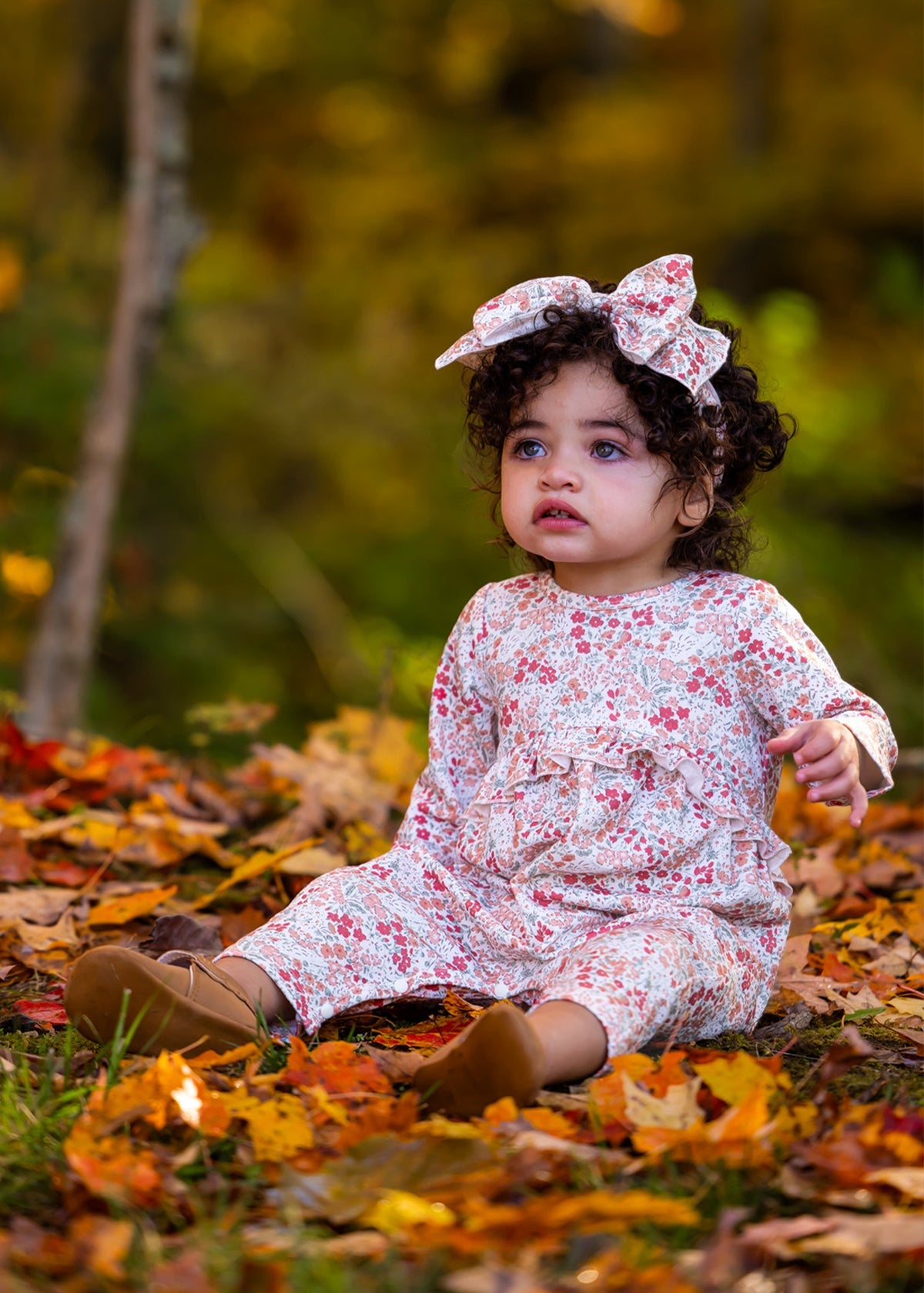 Dress your little one in the delightful Amber Romper, a perfect blend of comfort and charming style! The design includes an adorable ruffle detail along the empire waistline, adding a touch of whimsy and sweetness to the overall look.