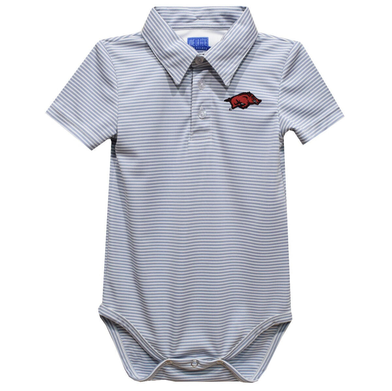 Arkansas Razorbacks Embroidered Gray Stripe Polo Onesie