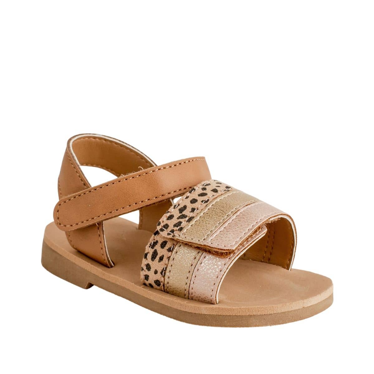 The Ashlee infant girls' sandal from Baby Deer is a must-have. With a metallic faux leather upper featuring a cheetah print design, this cute sandal, with its tiny block heel, has a hook-and-loop ankle and vamp strap for an easy, secure fit.