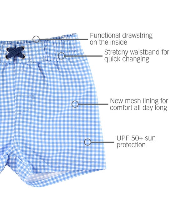 Complete your boy's summer swim outfit with these Swim Trunks. With its inner mesh lining and adjustable drawstrings on the inside, not only will he look good but feel good, too.