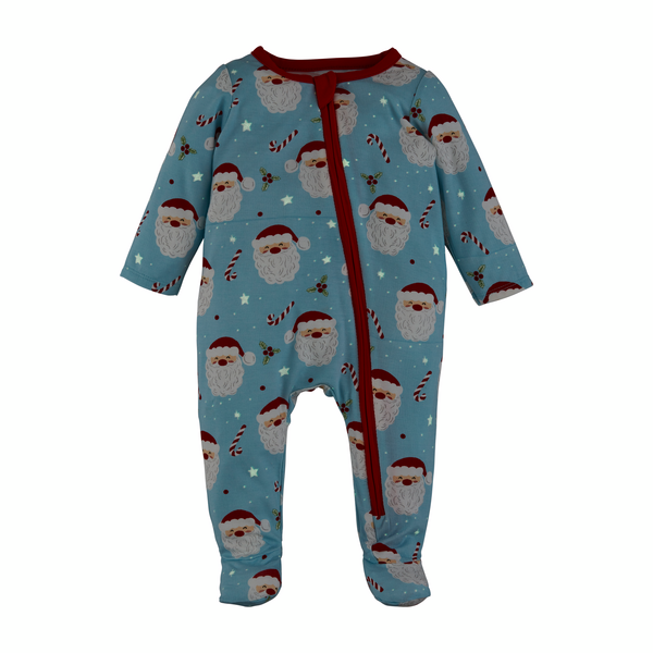 The Blue Santa Glow Baby Sleeper is a cozy and adorable addition to your little one's sleepwear collection. Made from high-quality knit bamboo fabric, this footed sleeper offers ultimate comfort and softness for your baby's delicate skin. The standout feature of this sleeper is its glow-in-the-dark pattern, which adds a touch of magic and fun to bedtime. The pattern comes to life when the lights go out, creating a whimsical and enchanting atmosphere in the nursery.