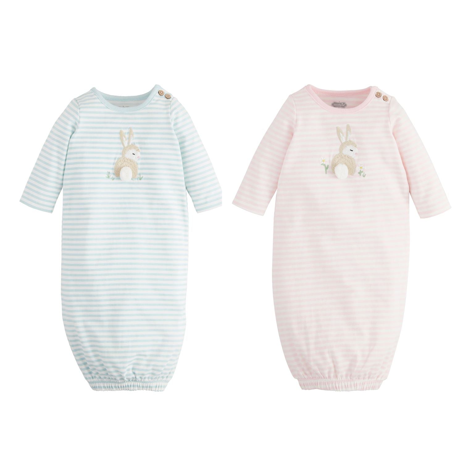 Embroidered cotton spandex, sleep down with coconut wood button shoulder and puff bunny tail.