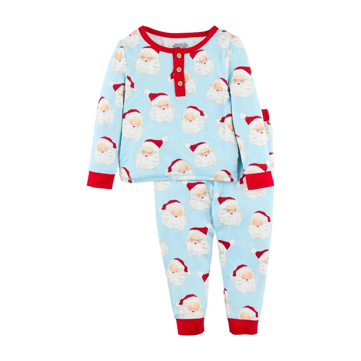2-piece set. Knit bamboo long sleeve pajama top with coconut wood button placket. Coordinating pull-on long pants.