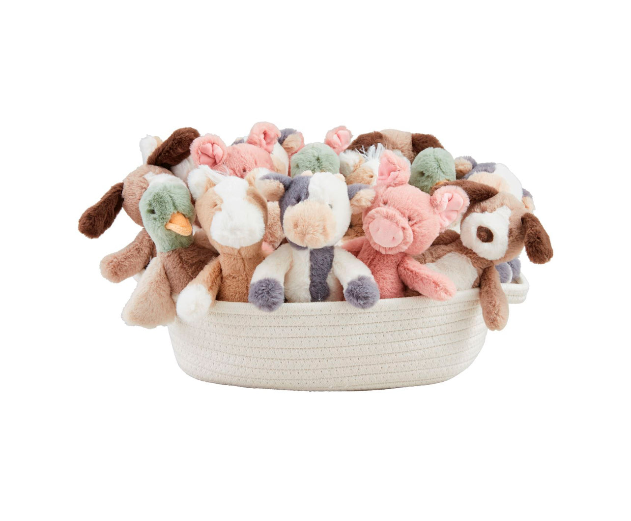 Indulge in the cutest of farm animals with the Mud Pie Farm Plush Rattles! Each mini faux fur plush rattle comes with a weighted seat for added fun. Choose from a duck, cow, puppy, horse, or pig for endless cuddles and entertainment. Perfect for little ones to develop their senses and imagination.
