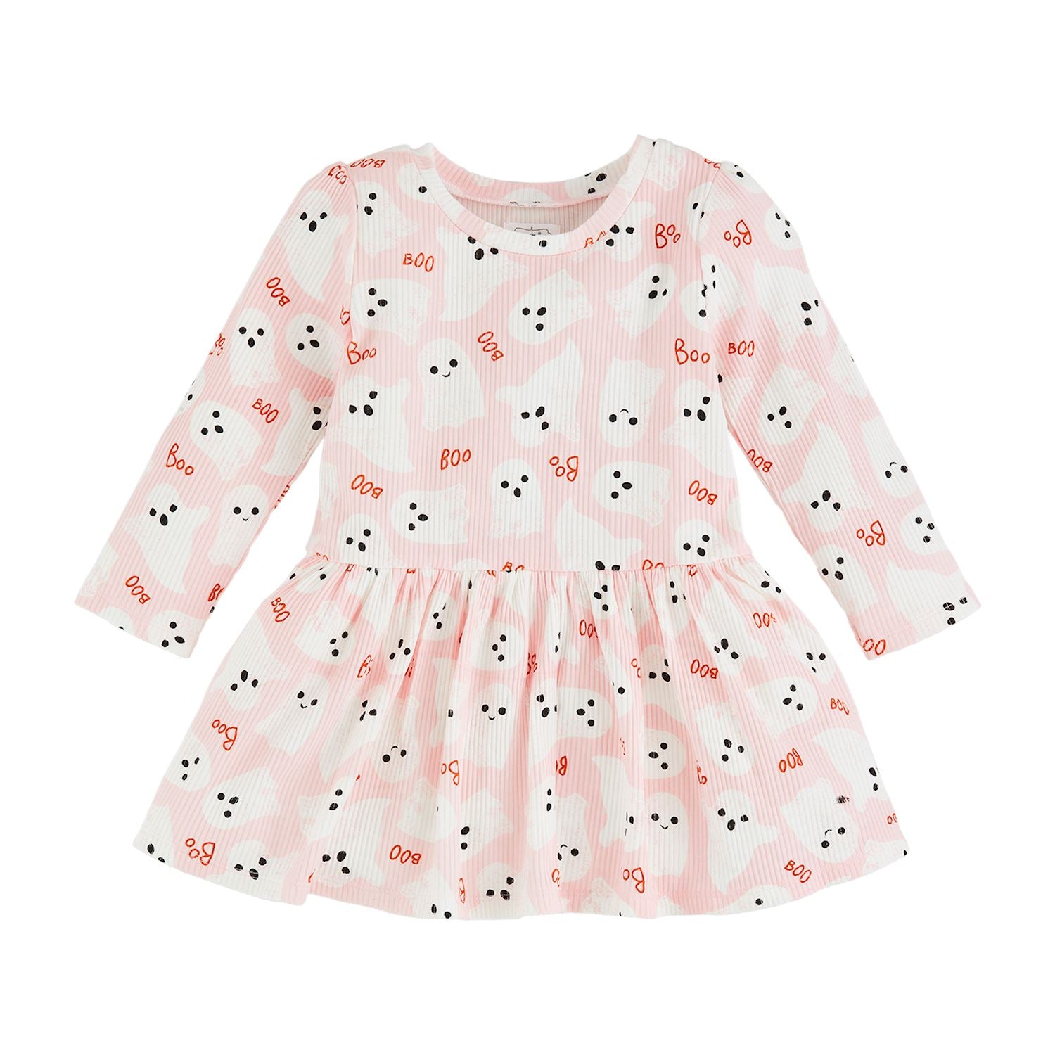 The Ghost Glow T-Shirt Dress is a stylish and comfortable addition to any little one's wardrobe. Made from soft and breathable cotton rib fabric, this long sleeve dress is perfect for year-round wear. The dress features a flounce hem, adding a playful and feminine touch to the overall design. What sets this dress apart is its unique glow-in-the-dark pattern, which adds a fun and whimsical element to any outfit. Whether it's for a casual day out or a special occasion, this dress is sure to make a statement.