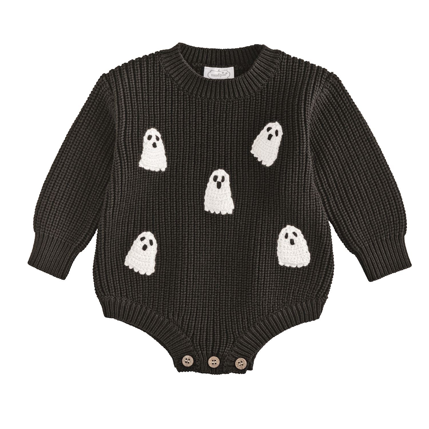 This adorable Ghost Chain Stitch Baby Sweater Bubble is crafted from soft, breathable 100% cotton yarn, ensuring your little one stays comfortable and cozy. The long sleeve design provides warmth, while the charming crochet ghosts add a playful and spooky touch, perfect for any season. The convenient inner leg coconut wood button closure allows for easy dressing and diaper changes, making it a practical choice for busy parents.
