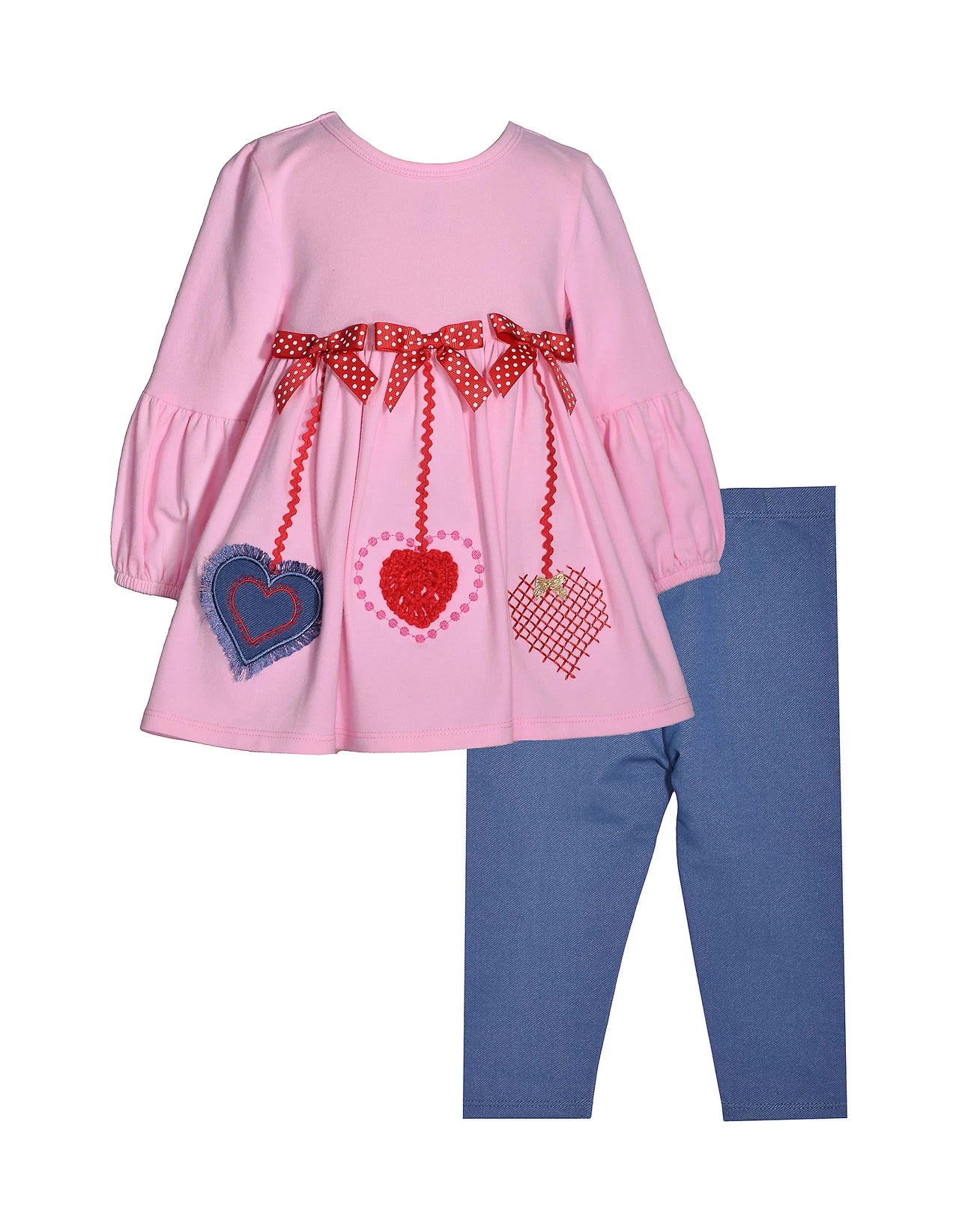 Feel the love in this Bonnie Jean Valentine Heart set that includes a heart embroidered pink top and coordinating purple leggings!