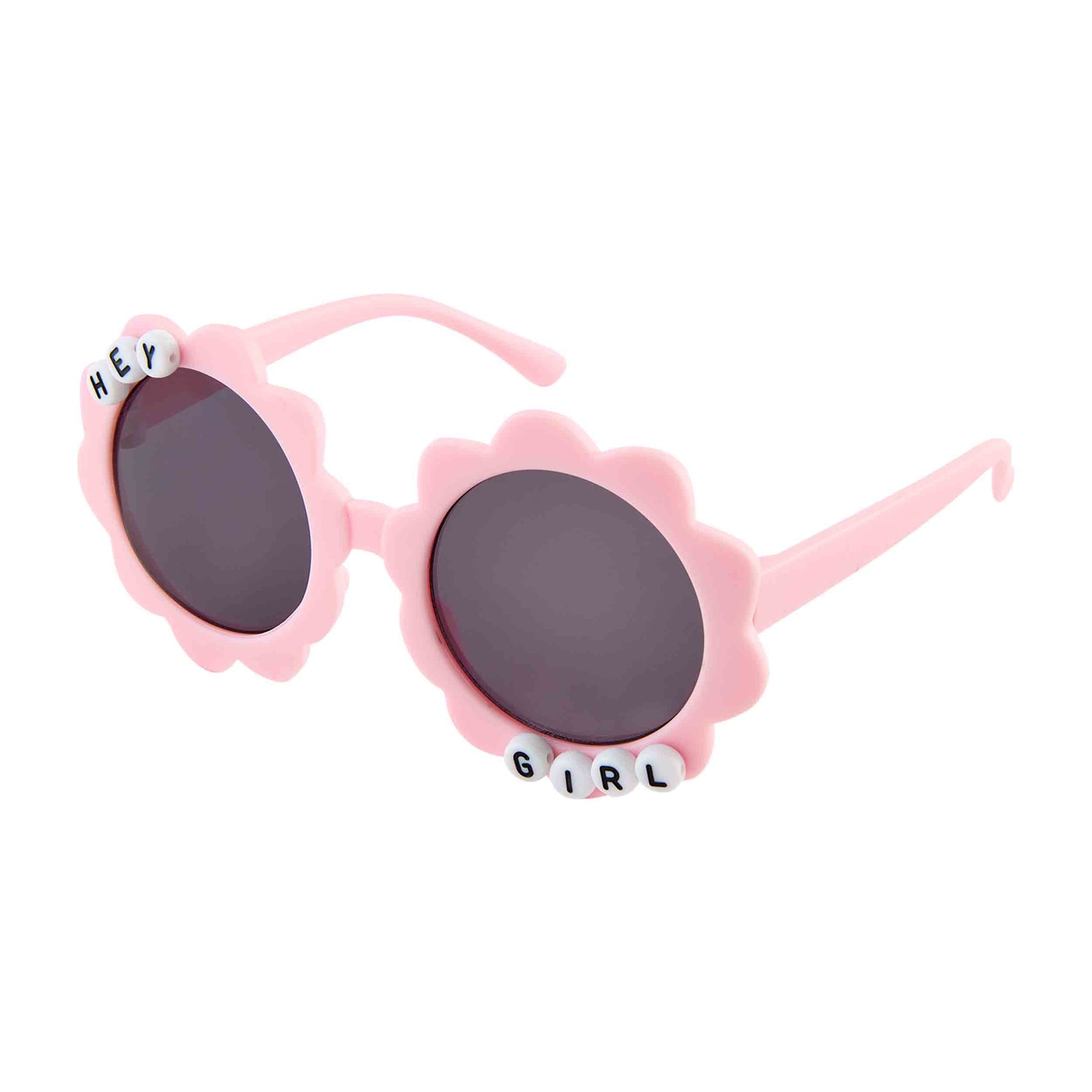 Enhance your little one's style with our trendy Hey Girl Bead Toddler Sunglasses. Designed for sassy young girls, these sunglasses showcase a fashionable letter bead sentiment frame. Crafted from durable plastic, they offer a safe and comfortable fit. Please note that these sunglasses are suitable for children above three years old due to small parts. The stylish pink coloring and charming bead detailing, spelling out "Hey Girl" add a touch of whimsy to any outfit.