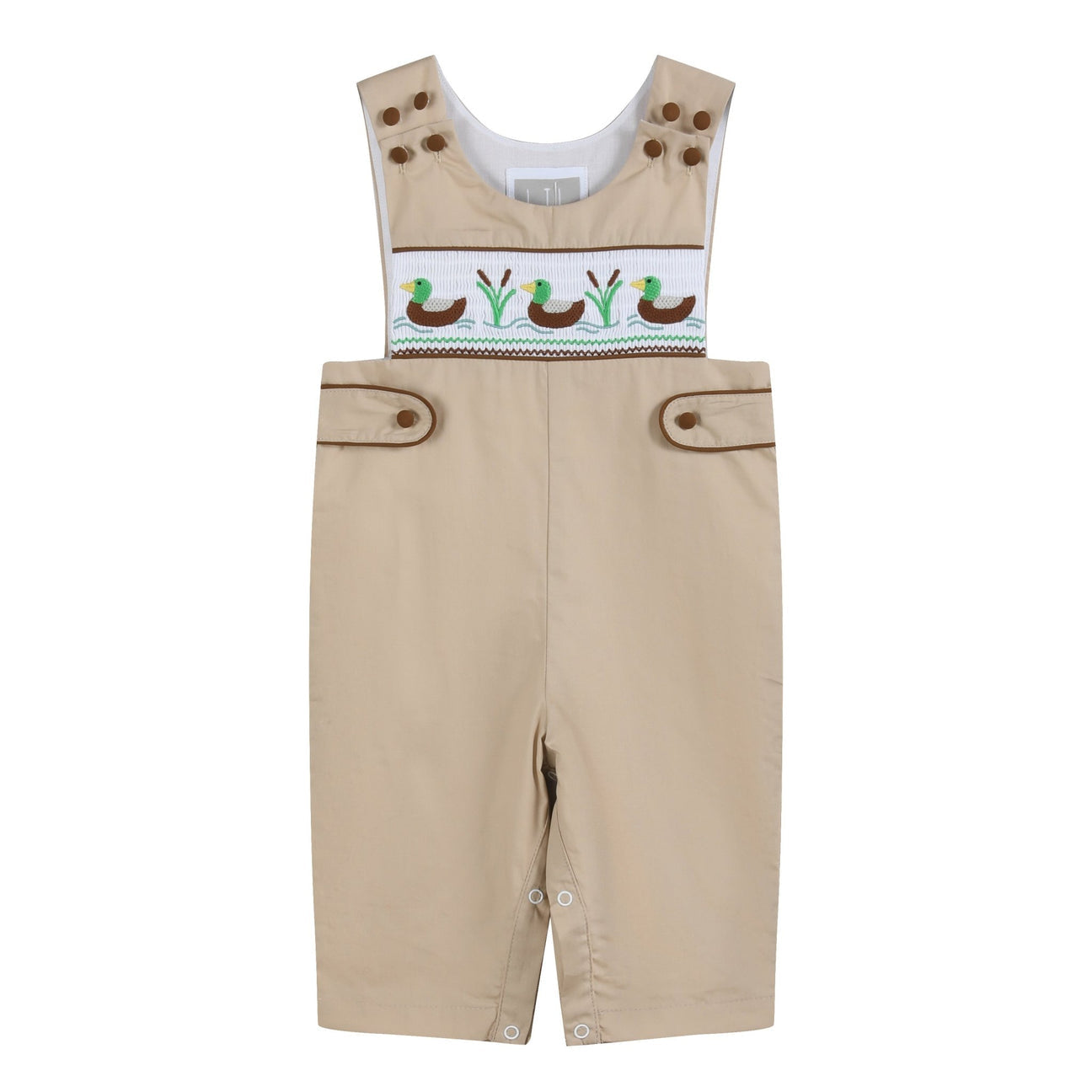 Dress your little adventurer in adorable style with our Light Brown Mallard Smocked Overalls. The smocked panel, featuring charming embroidered ducks, adds a playful touch to these versatile overalls. In classic light brown color, these overalls are not only cute but also comfortable, making them the perfect choice for your little one's everyday explorations.
