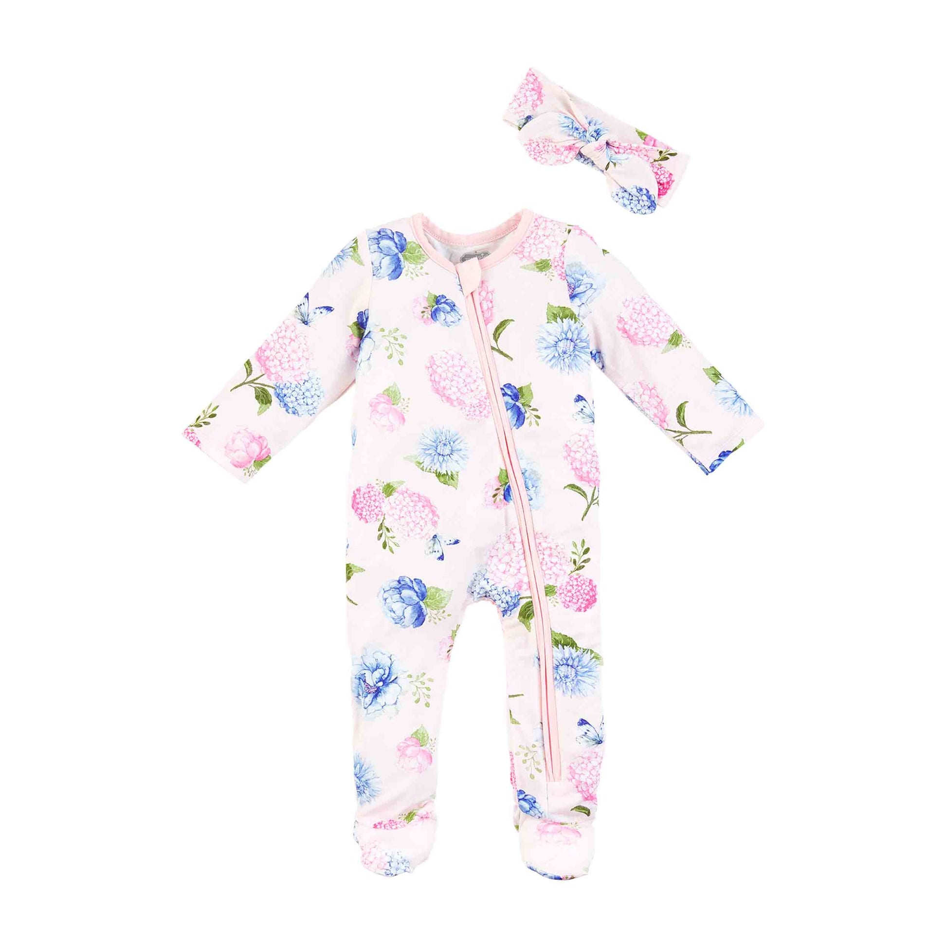 Pink Hydrangea Baby Sleeper Set