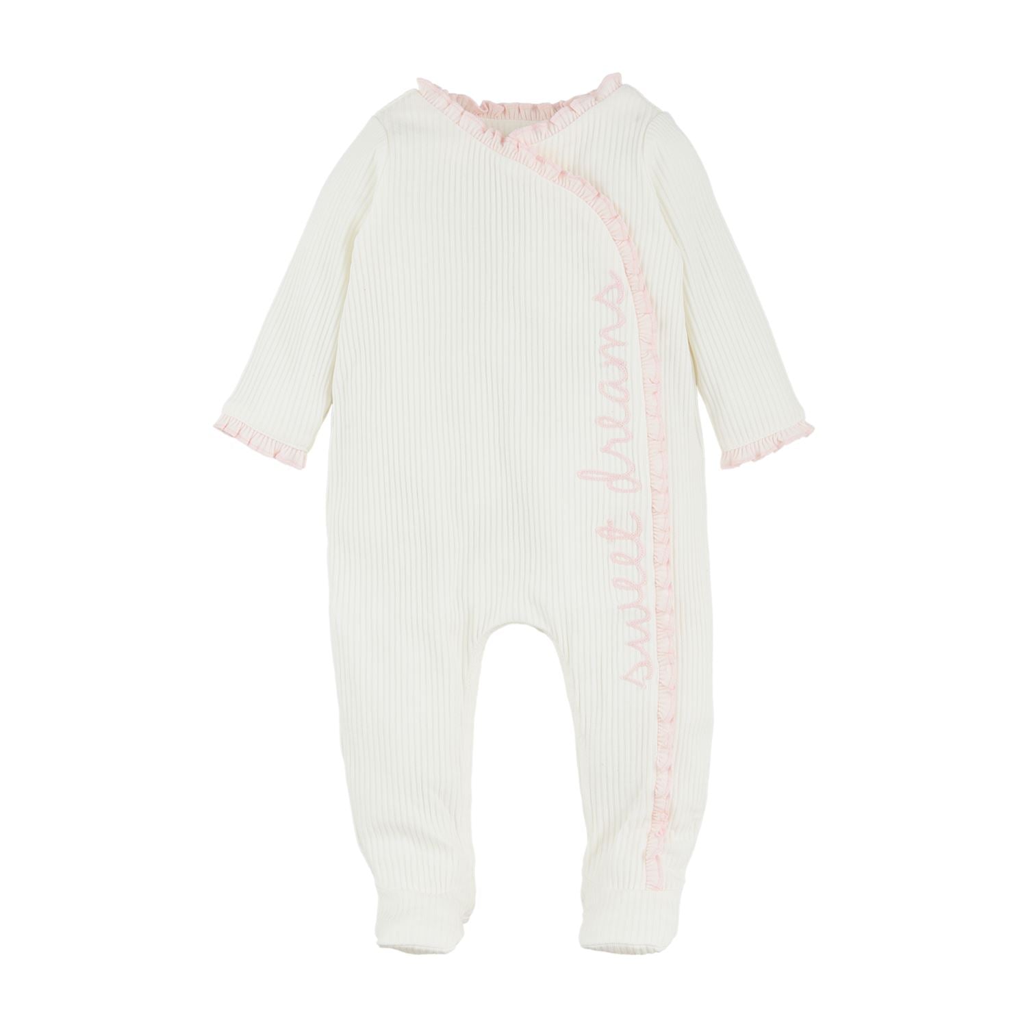 Cotton rib long sleeve sleeper with chain stitched embroidery. Inner leg snaps.