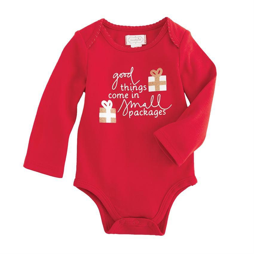This adorable long sleeved crawler celebrates your sweet little lady at Christmas time. Made for play and functionality with snap closures for easy dressing and diaper changes!