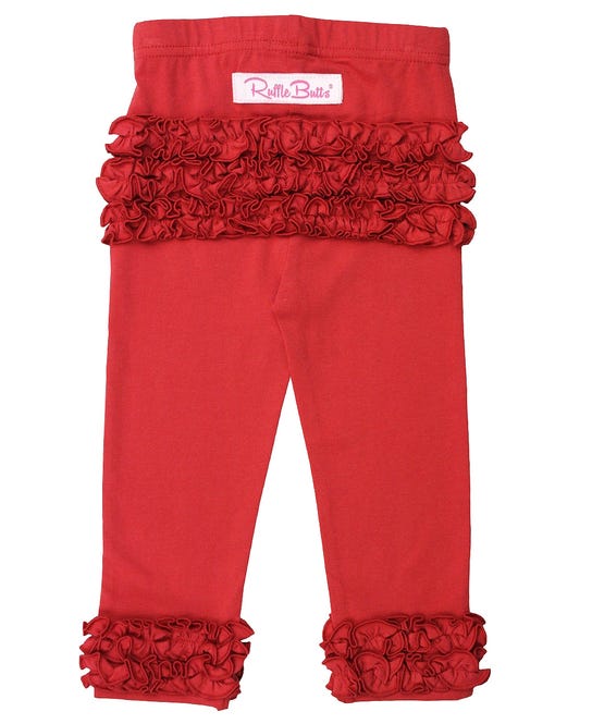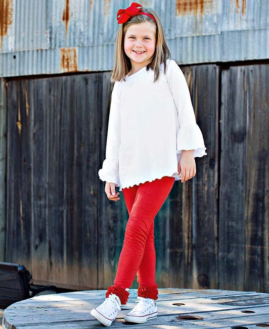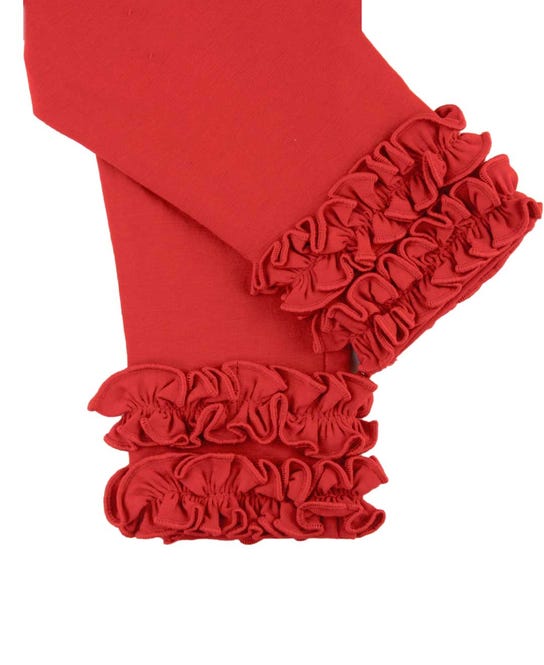 These leggings are a must-have for every little girl. She'll love the soft knit material with lots of stretch, perfect for all-day play. These leggings have a ruffle hem for that extra dose of cute.