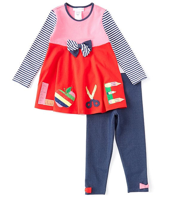 School Supplies Love Mixed-Media Dress & Solid Bow Trim Leggings 2-Piece Set
