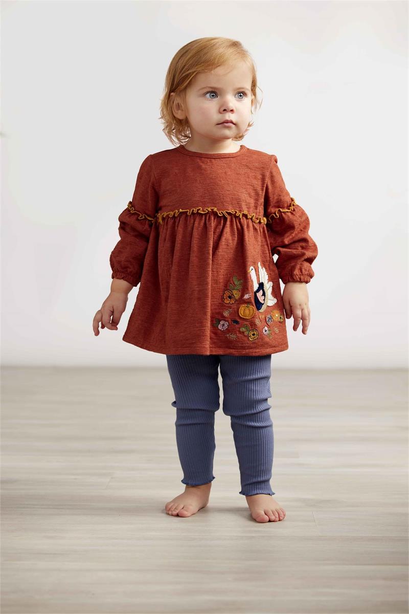 2-piece set. Appliquéd cotton slub tunic. Comes with cotton rib leggings.