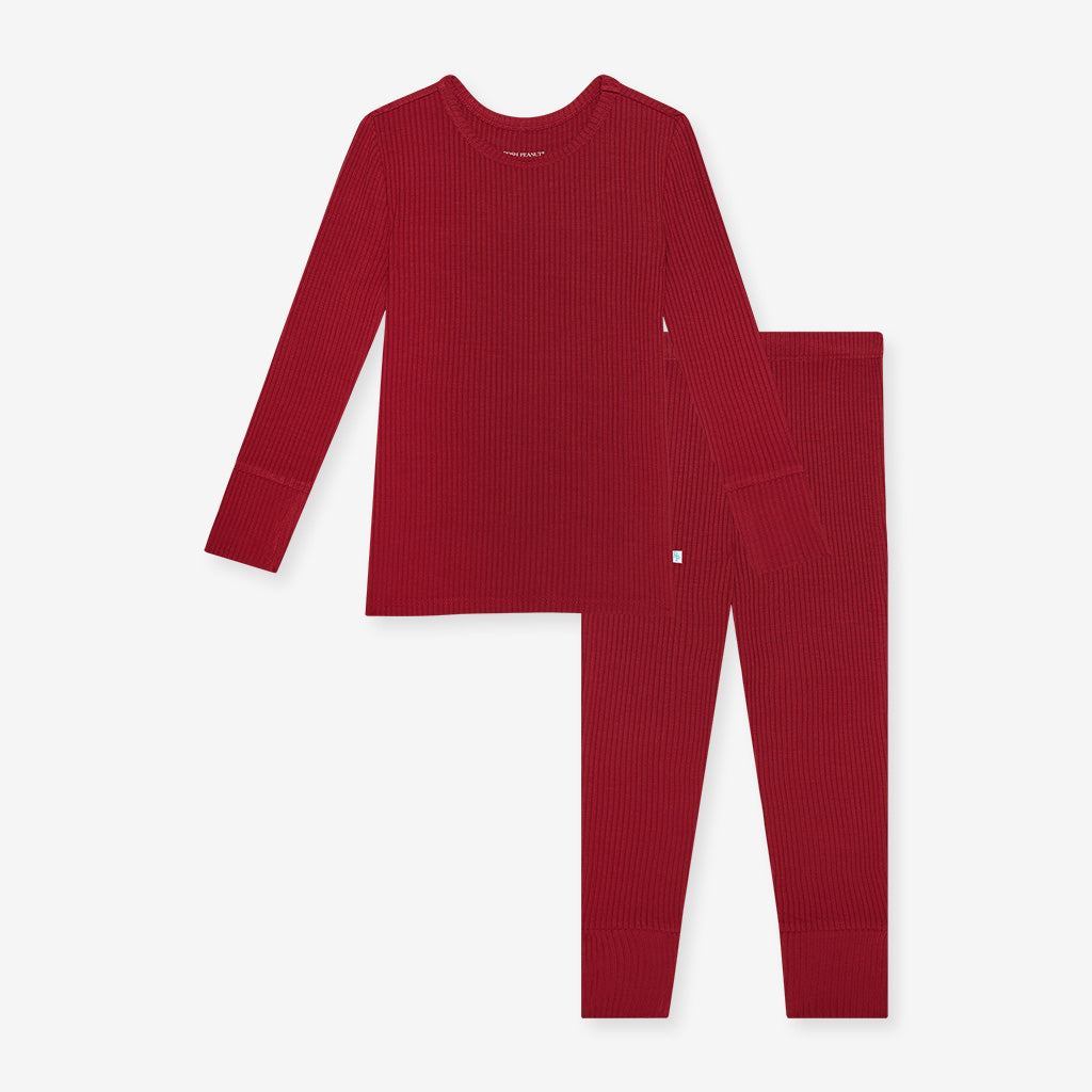 Dark Red Ribbed Long Sleeve Pajama
