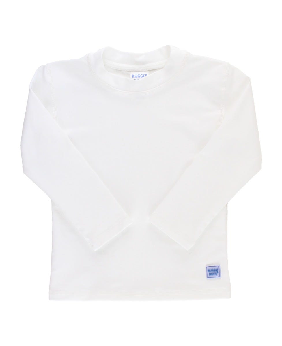 Our RuggedButts long sleeve rash guard top is great for active little guys. The UPF 50+ sun protective fabric and full coverage fit will keep him safe from the sun's harmful rays. The classic makes it easy to mix and match with your favorite RuggedButts swim trunks.